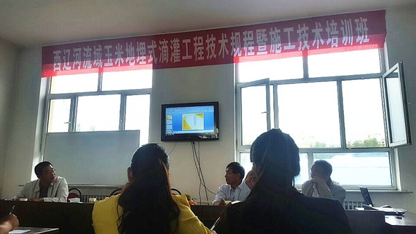 在今日上午9點(diǎn)由赤峰市水利局王鳳華、安子林、陳瑞祥、賽音四位領(lǐng)導(dǎo)來我公司親臨指導(dǎo)并在我院召開“西遼河流域玉米地埋式滴灌工程技術(shù)規(guī)程暨施工技術(shù)培訓(xùn)會(huì)”,培訓(xùn)內(nèi)容主要圍繞《地下滴灌技術(shù)》和《地埋滴灌設(shè)計(jì)和交流》,由我公司白云青總經(jīng)理主持會(huì)議。