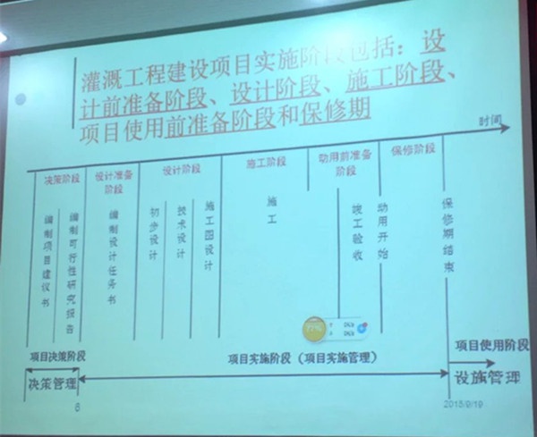 黃宗壁(北京農(nóng)業(yè)大學(xué)正教授)從灌溉工程項(xiàng)目管理的獨(dú)特性、工程項(xiàng)目管理規(guī)劃內(nèi)容、施工組織設(shè)計(jì)的編制方法(設(shè)計(jì)案例)進(jìn)行了講解與分析。例如灌溉工程常見的質(zhì)量問題1)水泵選取不合理導(dǎo)致供水不足或壓力不足,不能滿足植物需水要求;2)管道設(shè)計(jì)不合理,管徑大小會(huì)導(dǎo)致壓力損失太大;3)材料選擇錯(cuò)誤。
