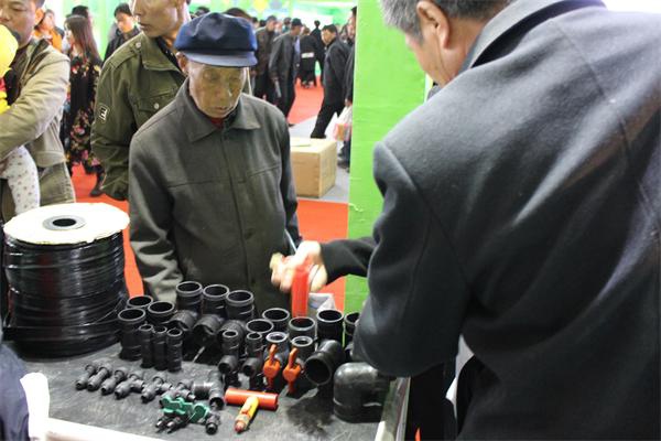 我公司秉承市水利局領導指示,參加此次農業(yè)博覽會,堅持“以人為本、生態(tài)優(yōu)先、面向社會、服務三農”的經營理念向此次參展的各位展商、農牧民群眾。我公司展銷的產品有單翼迷宮式滴灌帶、PE63管、PE32管、Φ75*2四通、Φ75*2三通、彎頭、Φ75直通、Φ63*1三通、球閥、Φ32*1三通、Φ16旁通、45度PVC彎頭等,因本次農博會正值播種之際,吸引大量農牧民朋友紛紛前來咨詢和了解。