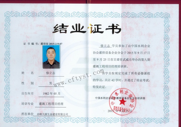 我公司赤峰天源生態(tài)建設(shè)有限公司特此派辦公室修立志主任和王鳳艷(設(shè)計(jì)人員)、王志鵬(施工人員)前往此次培訓(xùn)學(xué)習(xí),并取得了優(yōu)異的成績(jī)并為本公司爭(zhēng)得了榮譽(yù)。