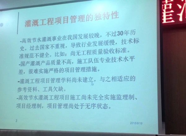 2015年9月17日至9月25日在甘肅武威市舉辦的第九期灌溉工程施工員培訓(xùn)班課程拉開帷幕,此次大會(huì)由周榮(曾任北京農(nóng)學(xué)院教授)、呂露(中國(guó)水利農(nóng)科院科長(zhǎng))、黃宗壁(北京農(nóng)業(yè)大學(xué)正教授)主持講座。